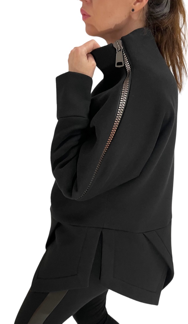 Dodatkowy atut to dekoracyjny zamek w rękawie, nadający bluzie charakteru.