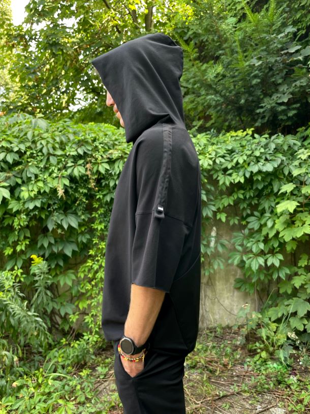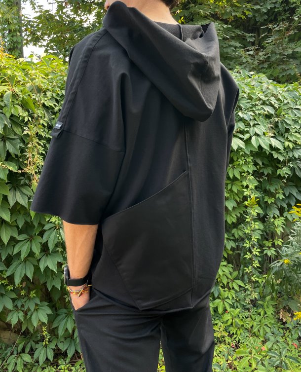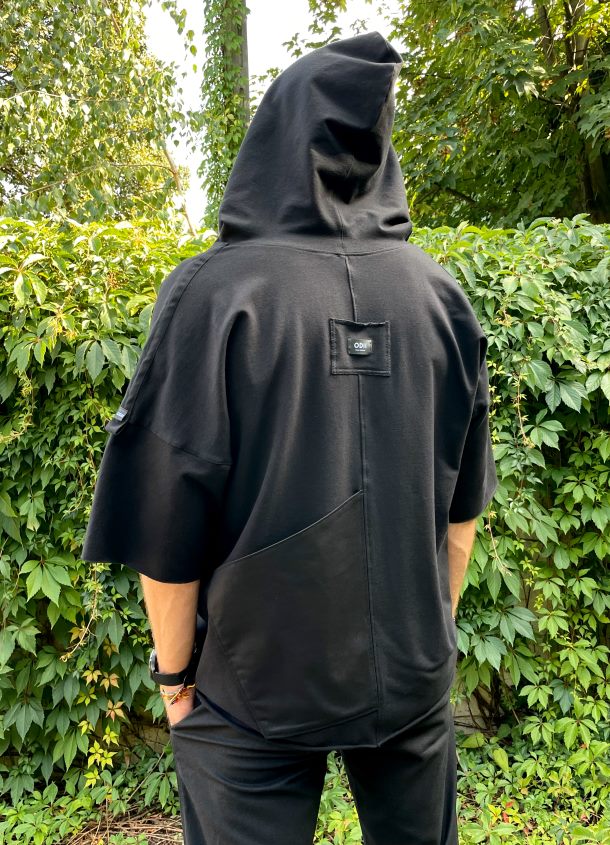 Bluzka z kapturem i dużą tylną kieszenią to propozycja dla DJ-a muzyki elektronicznej.