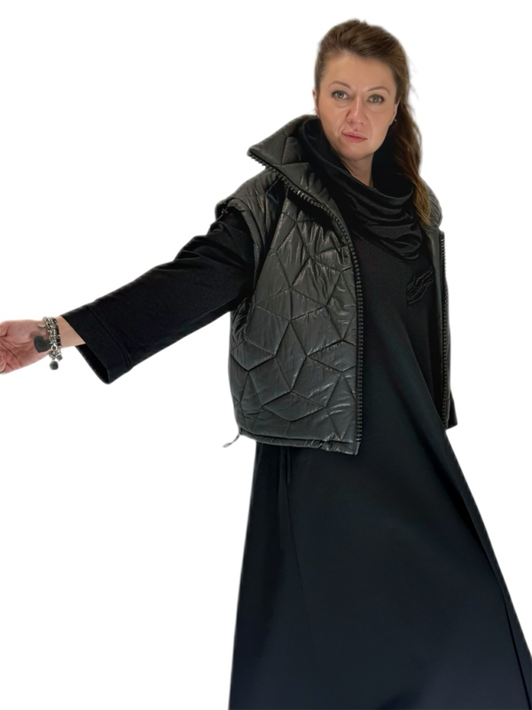 Geometryczny Strażnik to unikalna, oversize’owa kamizelka, która łączy designerską formę z funkcjonalnością. Stworzona dla osób ceniących minimalizm, wygodę i nowoczesne detale, jest idealnym wyborem na przejściowe sezony.