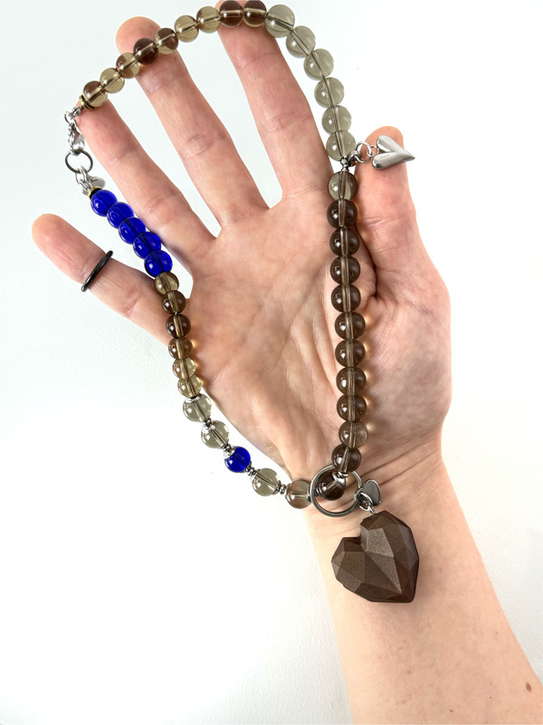Centralną formą naszyjnika jest ręcznie wykonane, matowione serce z żywicy epoxy. Lekkie, rzeźbiarskie i sensoryczne w dotyku.