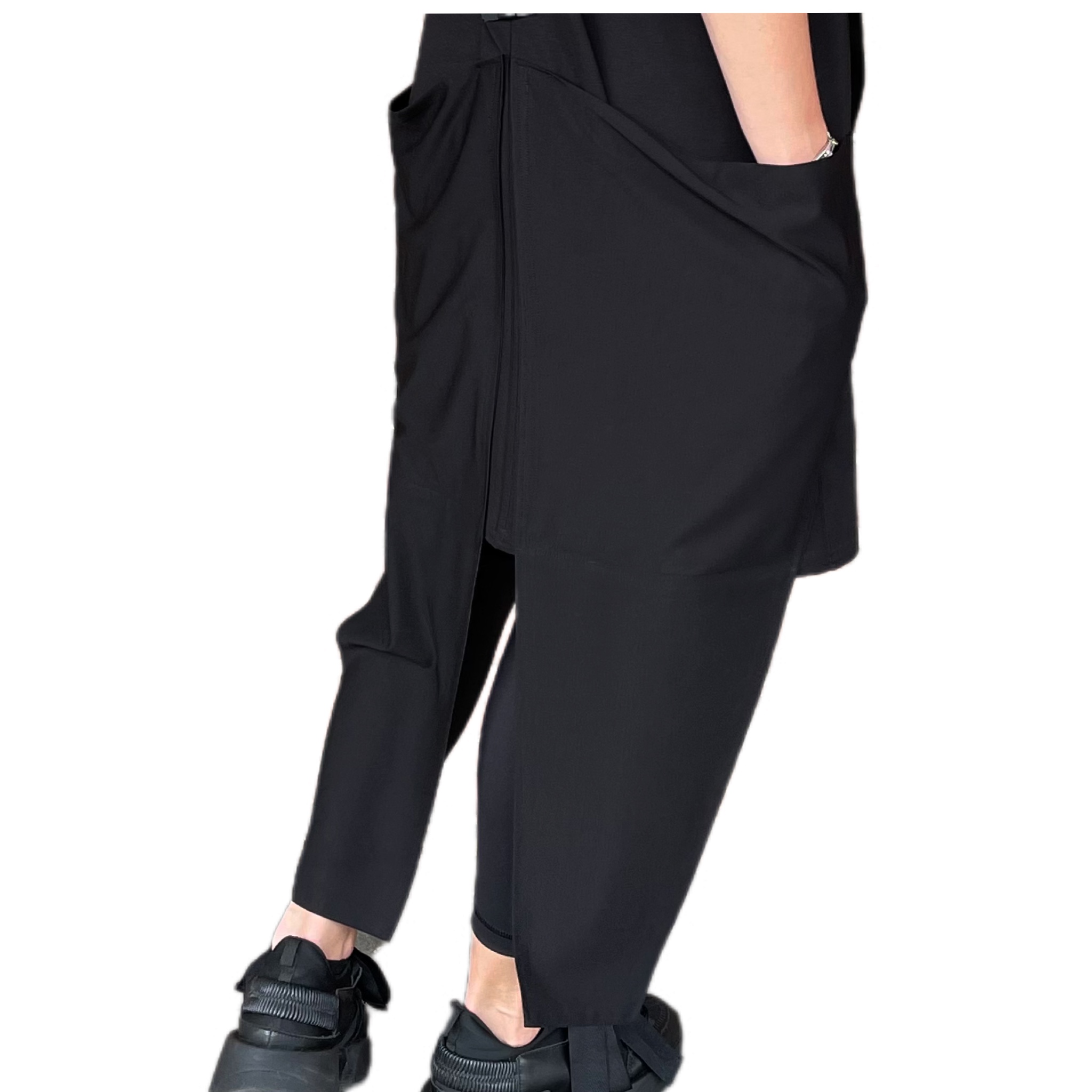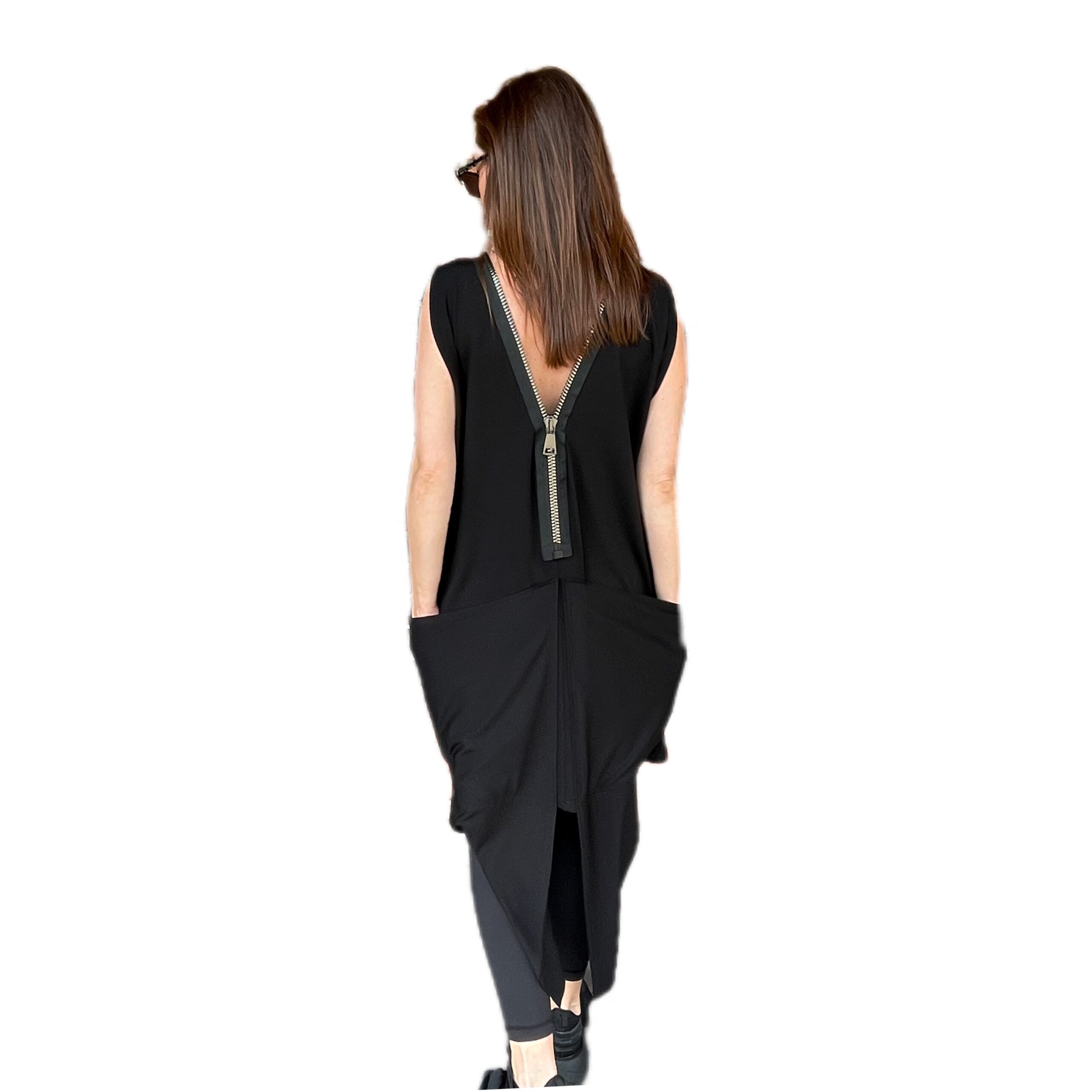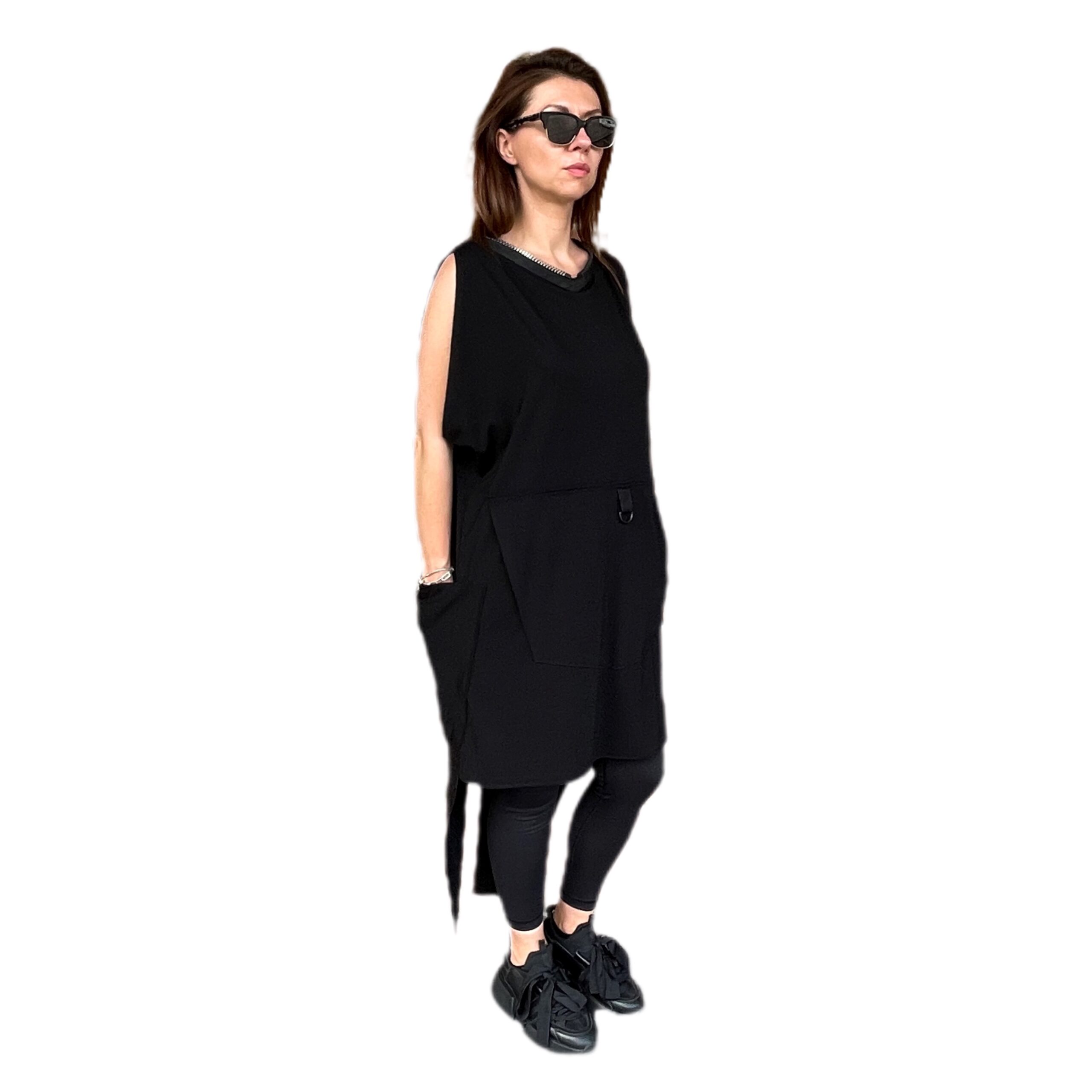 Asymetryczna bluzka z długimi, tylnymi kieszeniami w kształcie litery „V”.