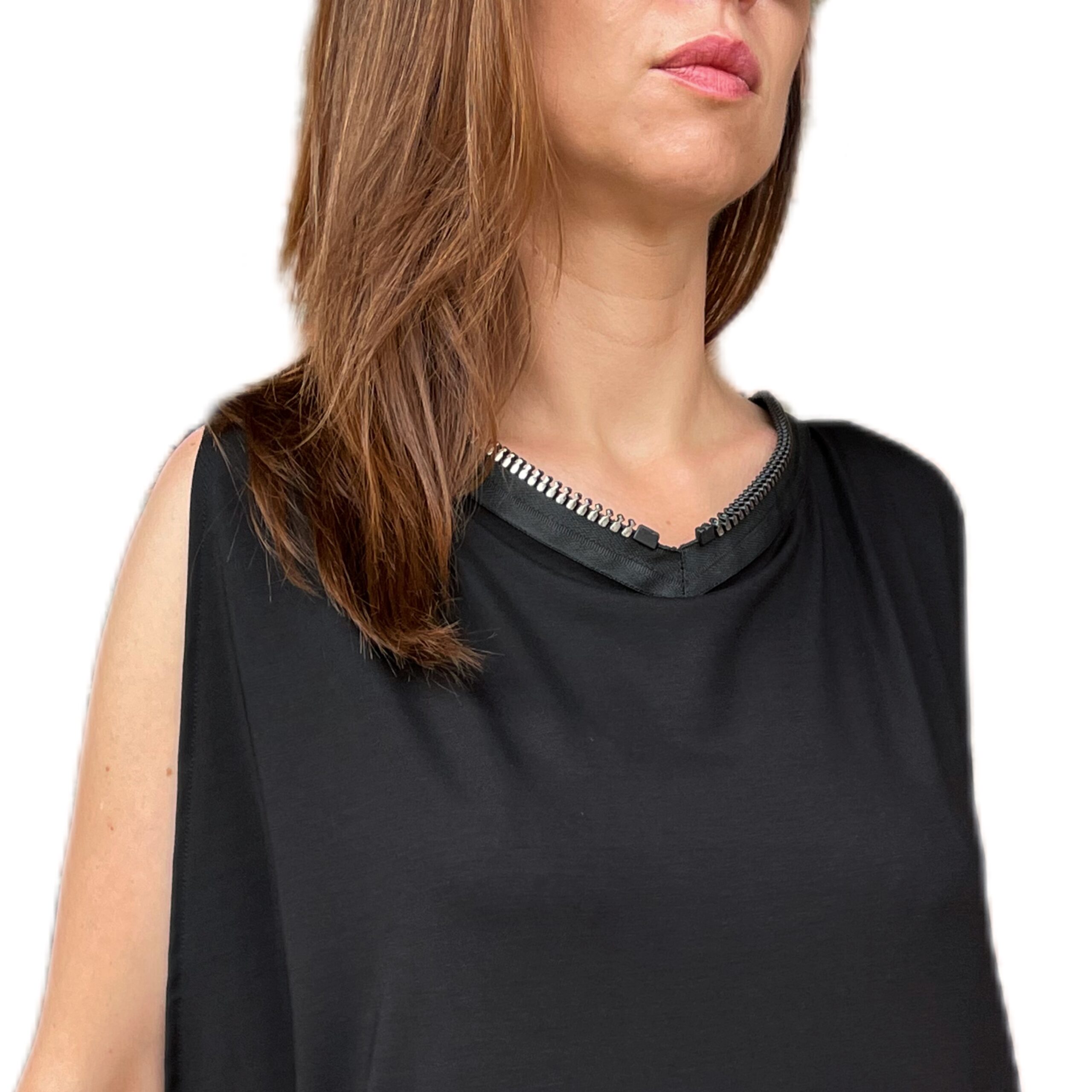 Wykończenie dekoltu zamkiem nie ma wpływu na komfort. Jest plastikowy i przyjazny dla skóry.