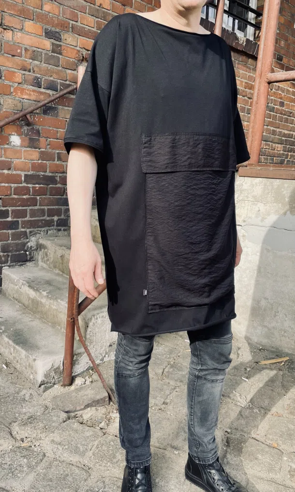 Minimalistyczny T-shirt z dużą kieszenią. Stylowy look – modnie i wygodnie !
