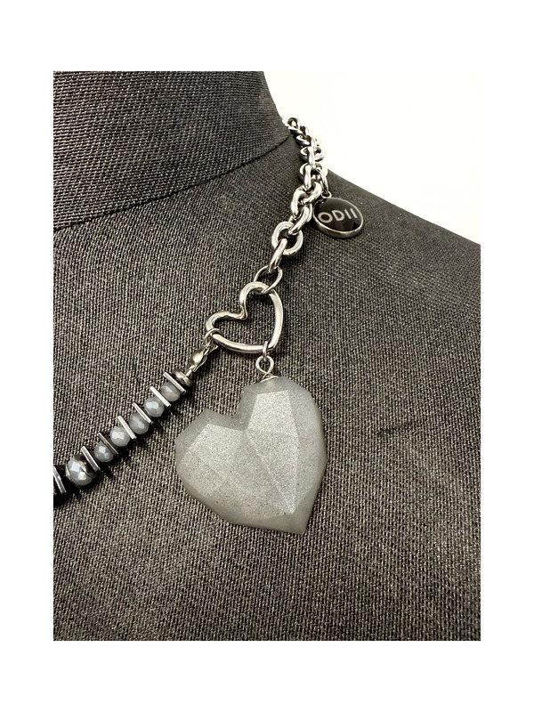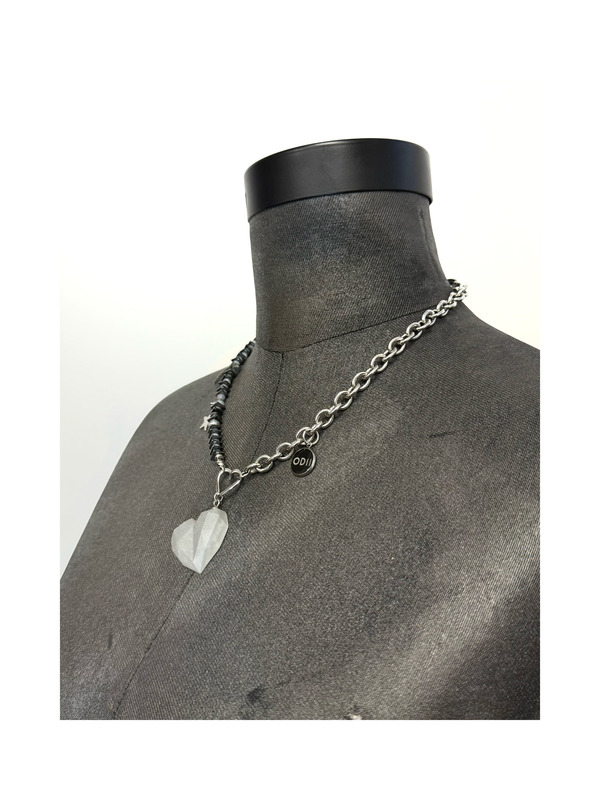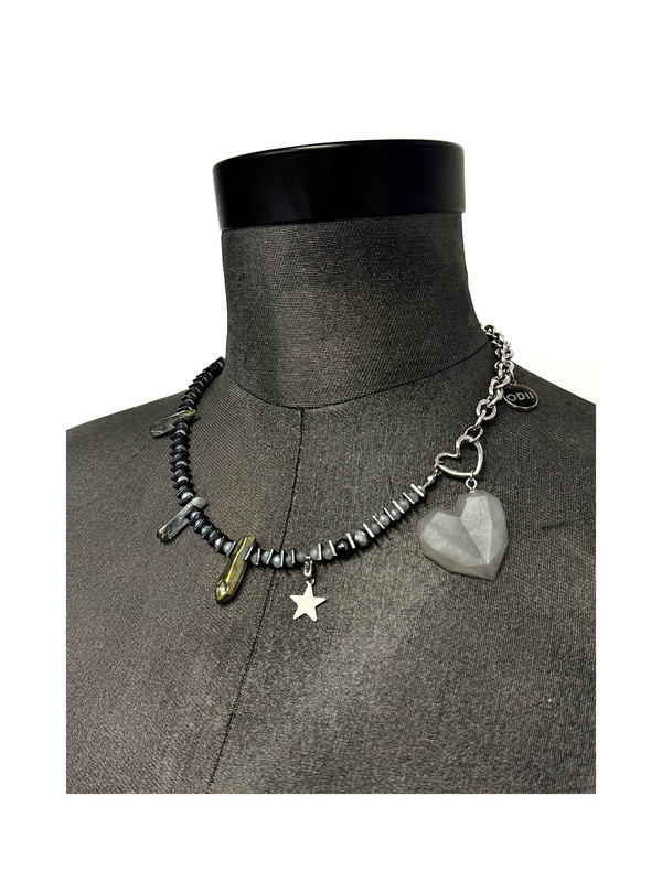 Ten naszyjnik to nieoczywisty akcent do Twojej stylizacji. Łączy w sobie tytanowy kwarc opalizujący na złoto, hematyt i drobne, fasetowane austriackie kamyczki, które pięknie imitują opal — dodają lekkości i subtelnego blasku. Idealnie łączą się kolorystycznie z kwarcem. Baza ze stali szlachetnej 304, która jest trwała i nie uczula.