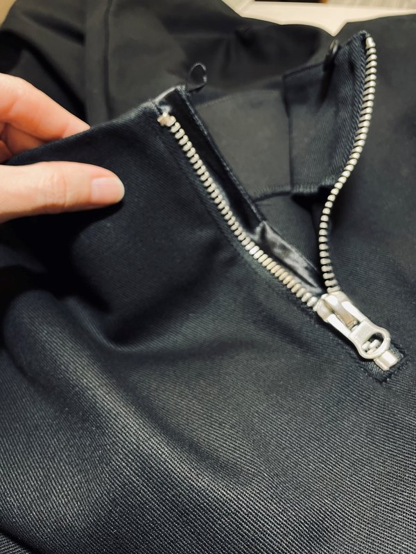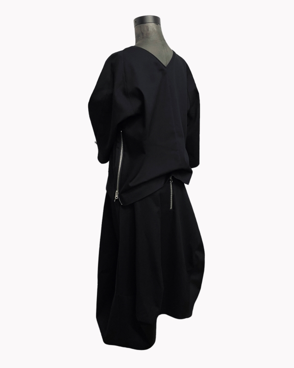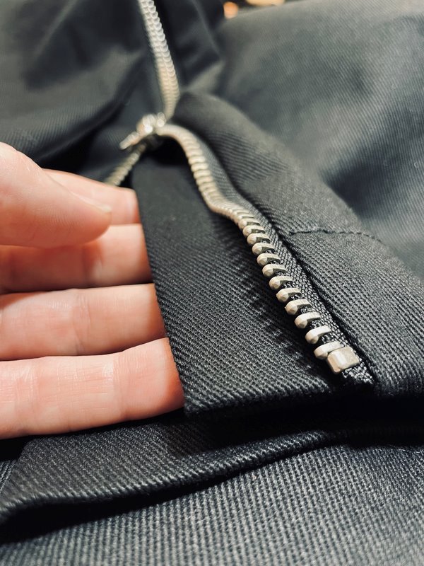 Zamek w bluzce i spódnicy jest starannie zabezpieczony listewką, co zapewnia komfort noszenia i eliminuje uczucie zimnego metalu na skórze.